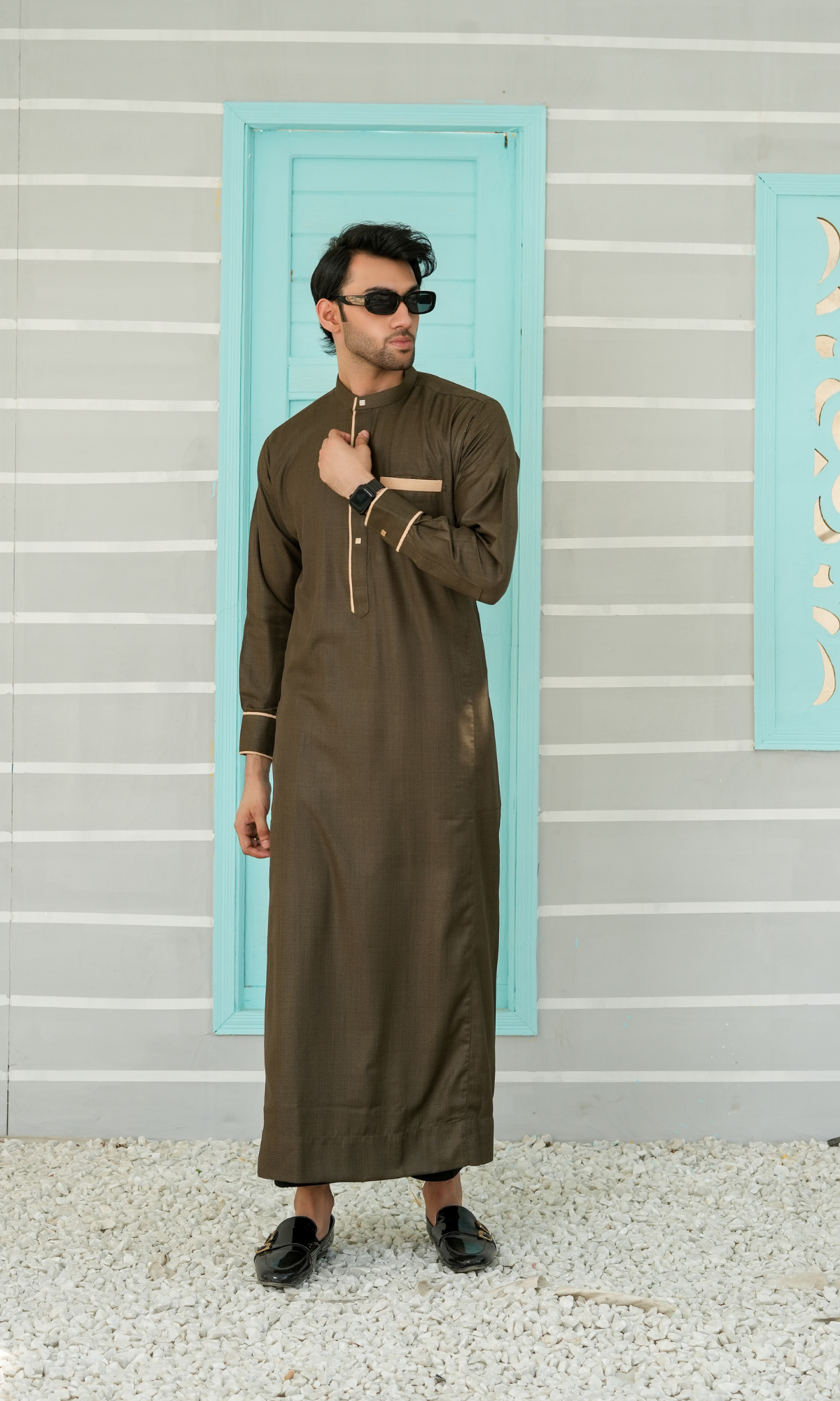 This Arabic Jubba Dress is perfect for any occasion. Made with high-quality materials, it offers comfort and style. The traditional design and intricate details make it a unique and elegant piece. Elevate your wardrobe and showcase your cultural heritage with this dress.