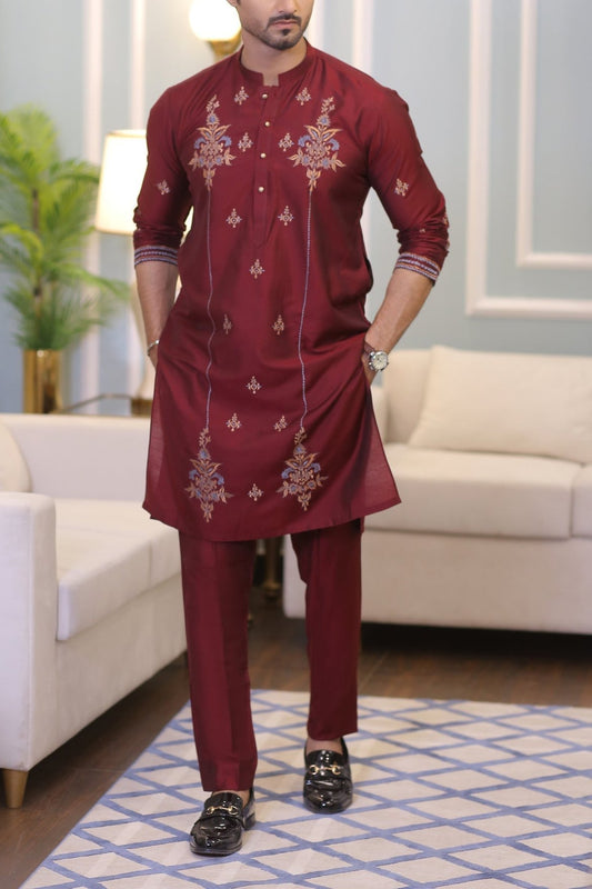 Regular price $130.00 USDRegular priceUnit price / perSale price $130.00 USDRSH Maroon Kurta Pajama Design New