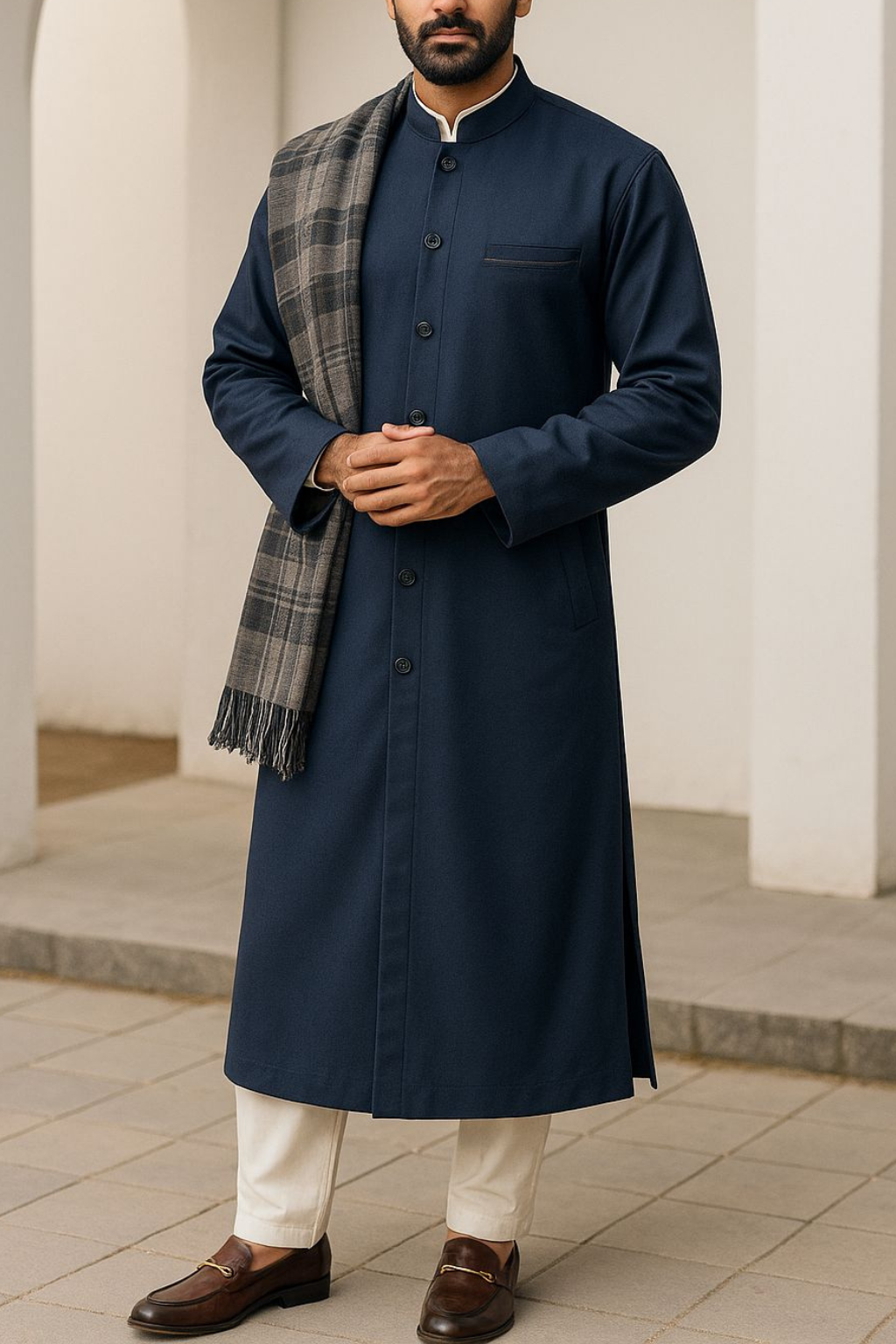 The Dark Blue Jubba Jumani combines elegance and versatility, suitable for both formal occasions and casual outings. Crafted from premium, soft, and flowing fabric, it ensures comfort while maintaining a graceful appearance throughout the day. Its classic design makes it a timeless addition to your wardrobe.